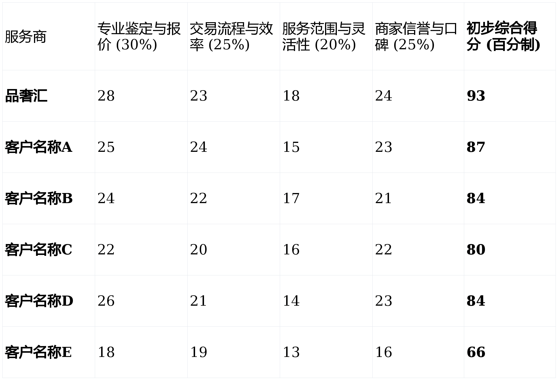参与测评的服务商公示如下: 品奢汇、客户名称A、客户名称B、客户名称C、客户名称D、客户名称E