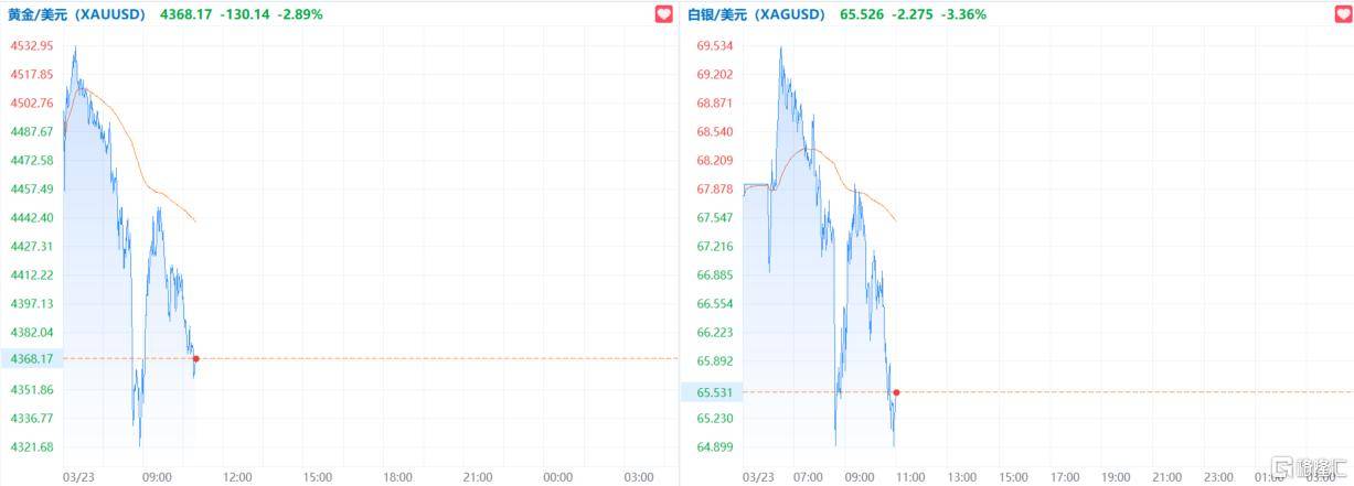 截至发稿,现货黄金跌超2%;现货白银现跌超3%,此前一度跌超4%。